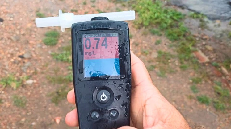 Questionado, ele negou inicialmente o consumo de álcool, mas concordou em realizar o teste do etilômetro (bafômetro). O exame apontou 0,74 miligrama de álcool por litro de ar soprado, valor mais que o dobro do que configura crime de trânsito. Após o teste, o motorista admitiu que estava ingerindo bebida alcoólica enquanto dirigia, alegando problemas familiares.